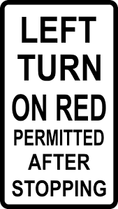 You may turn left at a red light only if a sign is displayed stating “Left Turn on Red Permitted After Stopping”.